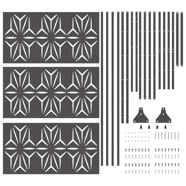 Močna jeklena konstrukcija Ta zaslon za zasebnost je narejen iz vrhunskega jekla, ki nudi izjemno trdnost in zanesljivost. Material je izbran zaradi svoje odpornosti in dolgotrajnosti, kar zagotavlja, da zaslon obdrži svoj izgled in funkcionalnost skozi čas. Doda tudi sodoben pridih vsaki terasi ali vrtu, kar ga dela praktično in estetsko izbiro. Preprost in eleganten dizajn S čistimi linijami in minimalno okrasitvijo, ta zaslon nudi moderno estetiko, ki se ujema z vsakim zunanjim okoljem. Njegova pravokotna oblika omogoča prilagodljivo postavitev, ne glede na to, ali gre za ločevanje vrta ali ustvarjanje prijetnega kotička na terasi. Izključno za zunanjo uporabo Zasnovan izključno za zunanjo rabo, je ta zaslon idealen za ločevanje različnih prostorov v vrtu ali na terasi. Njegova močna konstrukcija prenese vse vremenske vplive in nudi zanesljivo rešitev za zasebnost na prostem. Brez napora za sestavo Paket vsebuje vse potrebne komponente za sestavo in enostavna navodila. Sestavljanje zahteva dvoje ljudi in izvijač, kar zagotavlja hitro in enostavno postavitev zaslona. Prihaja kot enota Zaslon za zasebnost je dostavljen kot celota, pripravljen za sestavo in postavitev na tvojem idealnem mestu na prostem. S tem zmanjšaš odpadke pri pakiranju in poenostaviš postopek sestavljanja, kar ti omogoča, da hitro uživaš v novem dodatku za vrt.