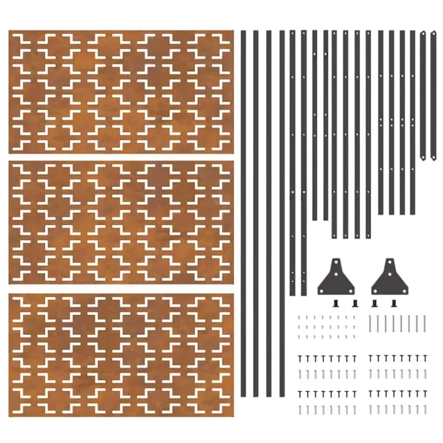 Močna jeklena konstrukcija Ta zaslon za zasebnost je narejen iz vrhunskega jekla, ki nudi izjemno trdnost in zanesljivost. Material je izbran zaradi svoje odpornosti in dolgotrajnosti, kar zagotavlja, da zaslon obdrži svoj izgled in funkcionalnost skozi čas. Doda tudi sodoben pridih vsaki terasi ali vrtu, kar ga dela praktično in estetsko izbiro. Preprost in eleganten dizajn S čistimi linijami in minimalno okrasitvijo, ta zaslon nudi moderno estetiko, ki se ujema z vsakim zunanjim okoljem. Njegova pravokotna oblika omogoča prilagodljivo postavitev, ne glede na to, ali gre za ločevanje vrta ali ustvarjanje prijetnega kotička na terasi. Izključno za zunanjo uporabo Zasnovan izključno za zunanjo rabo, je ta zaslon idealen za ločevanje različnih prostorov v vrtu ali na terasi. Njegova močna konstrukcija prenese vse vremenske vplive in nudi zanesljivo rešitev za zasebnost na prostem. Brez napora za sestavo Paket vsebuje vse potrebne komponente za sestavo in enostavna navodila. Sestavljanje zahteva dvoje ljudi in izvijač, kar zagotavlja hitro in enostavno postavitev zaslona. Prihaja kot enota Zaslon za zasebnost je dostavljen kot celota, pripravljen za sestavo in postavitev na tvojem idealnem mestu na prostem. S tem zmanjšaš odpadke pri pakiranju in poenostaviš postopek sestavljanja, kar ti omogoča, da hitro uživaš v novem dodatku za vrt.