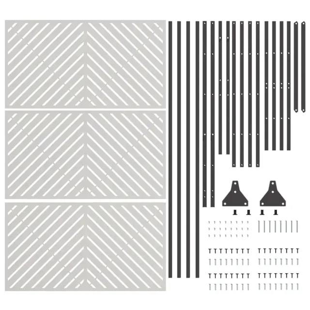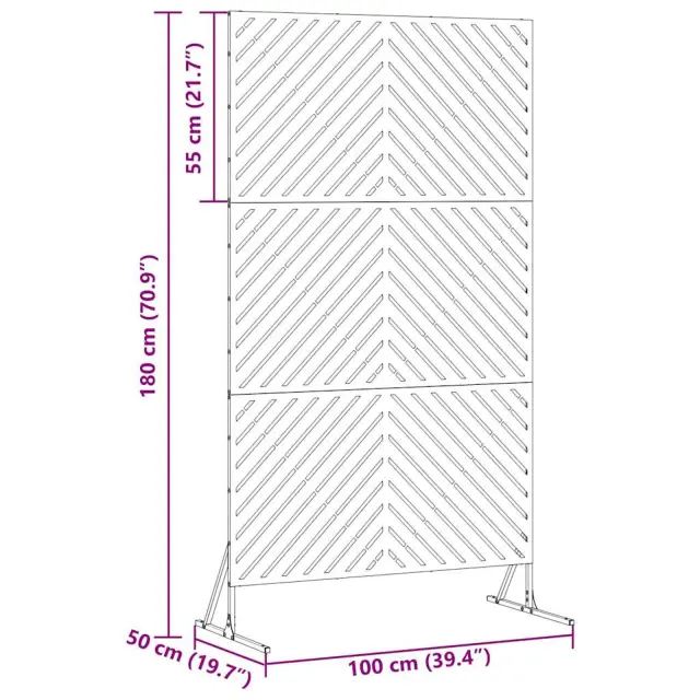 Ta zaslon za zasebnost v vrtu je lepa in praktična izbira za vsak zunanji prostor. Ima moden izgled, ki se ponaša s preprostostjo in čistimi linijami, kar ga naredi popolnega za sodobne vrtove in terase. Ta zaslon nudi občutek zasebnosti in hkrati osveži izgled tvojega zunanjega prostora. Njegova jeklena konstrukcija prinaša vzdržljivost in eleganten izgled, kar ga dela primernega za različne zunanje pogoje.