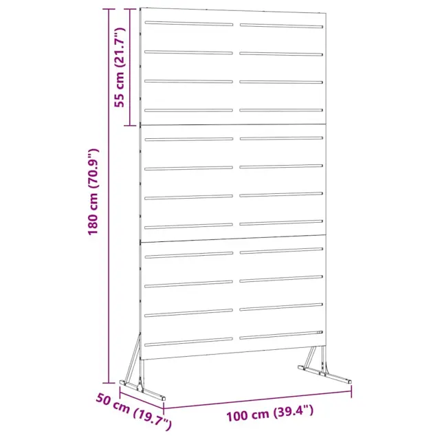 • Močan jekleni material: Ta zaslon je narejen iz trdnega jekla, ki se upira vremenskim vplivom. Njegova zgradba poskrbi, da ostane v dobrem stanju in zaščiti vaš zasebni prostor skozi čas.