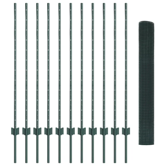 vidaXL Zelena varjena žična ograja z 11 U stebrički 1.2x25 m jeklo