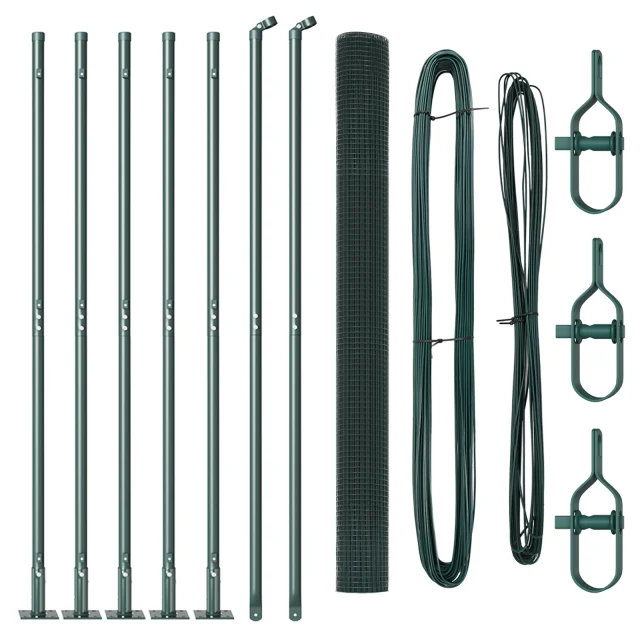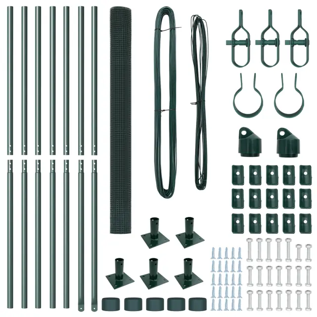 vidaXL Zelena varjena žičnata ograja s 7 fički z flanšo 1,5x10 m iz jekla
