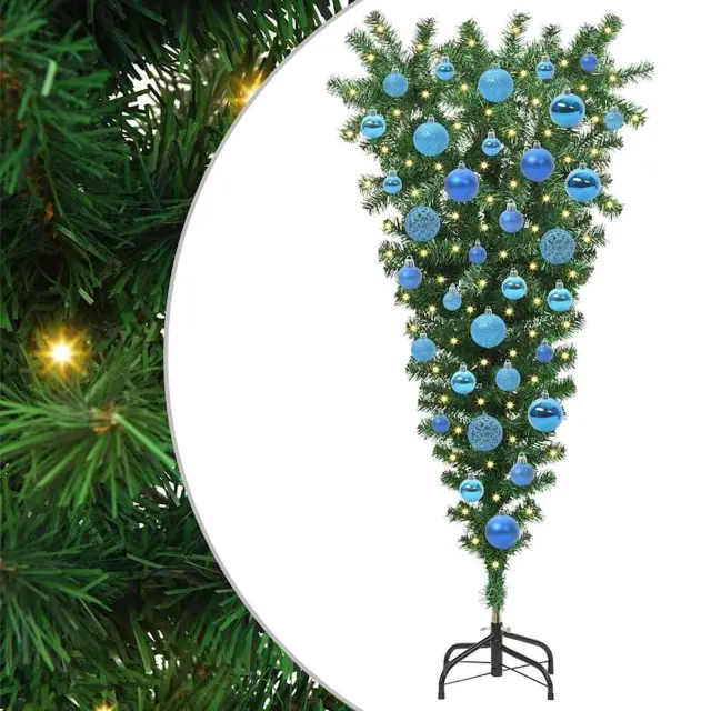 vidaXL Zeleni umetni božičkov drevesec z obrnjenim dizajnom in kompletom kroglic