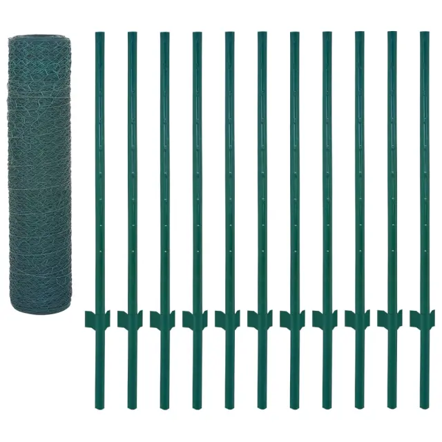 vidaXL Žična mrežna ograja s stebrički jeklo 25x0,5 m zelena