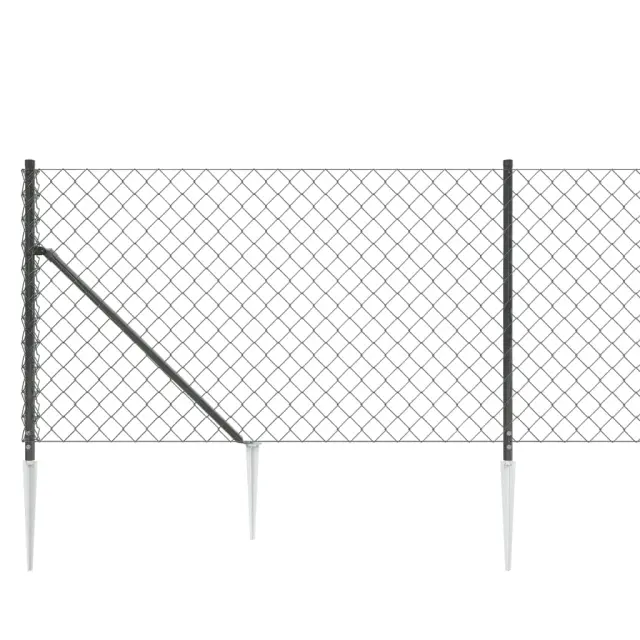 Ta vsestranska mrežna ograja s konicami za postavitev je idealna za vzpostavitev varne in dolgotrajne pregrade okoli vašega zemljišča. Uporablja se lahko tudi za postavitev ograde za živali. Trpežen material: Jeklo je izjemno trd in močan material. Ponuja trdnost in stabilnost. Pocinkanje zagotavlja boljšo zaščito pred korozijo in je uporabno za izdelke, ki se bodo uporabljali na prostem kot tudi v zahtevnih okoljih.Premaz iz PVC: Žična mreža je po površini prevlečena s PVC. Zaradi tega je odporna na UV žarke, rjo in obrabo.Zasnova z medsebojnim prepletanjem: Zaradi zasnove z prepletanjem ta mrežasta ograja ni le prilagodljiva, temveč tudi izjemno trpežna in jo je težko zlomiti. Lahko jo tudi razrežete na želeno velikost.Barva: AntracitnaMaterial: Pocinkano jeklo s PVC oblogoŽična ograja:Velikost ograje: 1 x 25 m (V x D)Velikost mreže: 60 x 60 mmPremer glavne žice: 1,3/2,2 mm (1,3 mm jeklena žica; 2,2 mm vključno s PVC prevleko)Premer robne žice: 1,6/2,5 mm (1,6 mm jeklena žica; 2,5 mm vključno s PVC prevleko)Dodatki za postavitev ograje:Dimenzije ravnega stebrička (brez konice): 32 mm x 1,1 m (Premer x V)Dimenzije opornega stebrička (brez konice): 32 mm x 1,06 m (Premer x V)Dimenzije povezovalne žice: 1,2/1,8 mm x 30 m (Premer x D)Potrebno sestavljanje: DaPaket vsebuje:1 x Verižna ograja11 x Raven stebriček s pokrovčkom in držali za žico2 x Oporni stebriček11 x Raven stebriček2 x Konica za oporni stebriček2 x Diagonalno držalo za oporni stebriček1 x Vezna žica 153977
