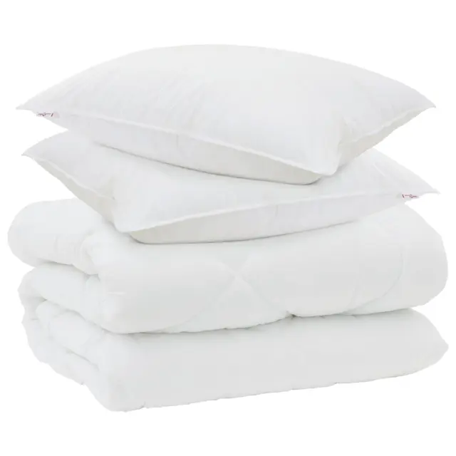 • Vključene komponente: Set je dostavljen kot celota in vključuje eno zimsko odejo ter dve mehki blazini, ki so vakuumsko pakirane za enostavno rokovanje. Blazine se hitro povrnejo v prvotno obliko, kar nudi zračen in podporen občutek.