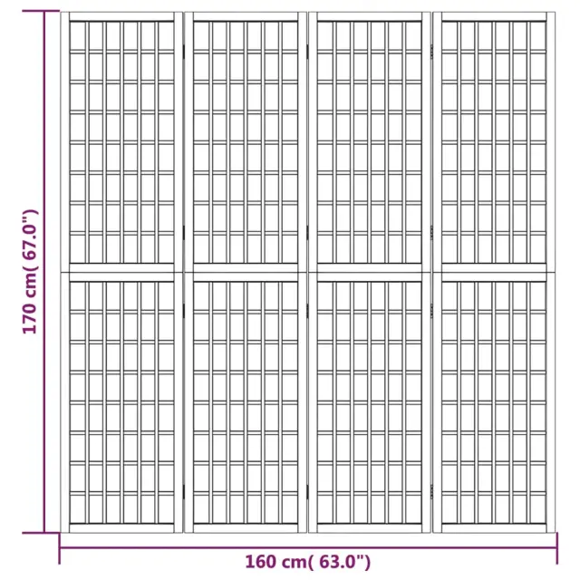 vidaXL Zložljiv 4-delni paravan japonski stil 160x170 cm črne barve