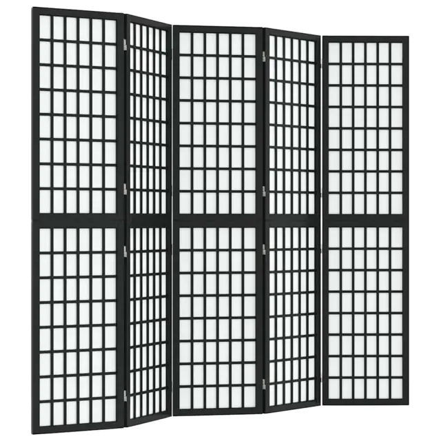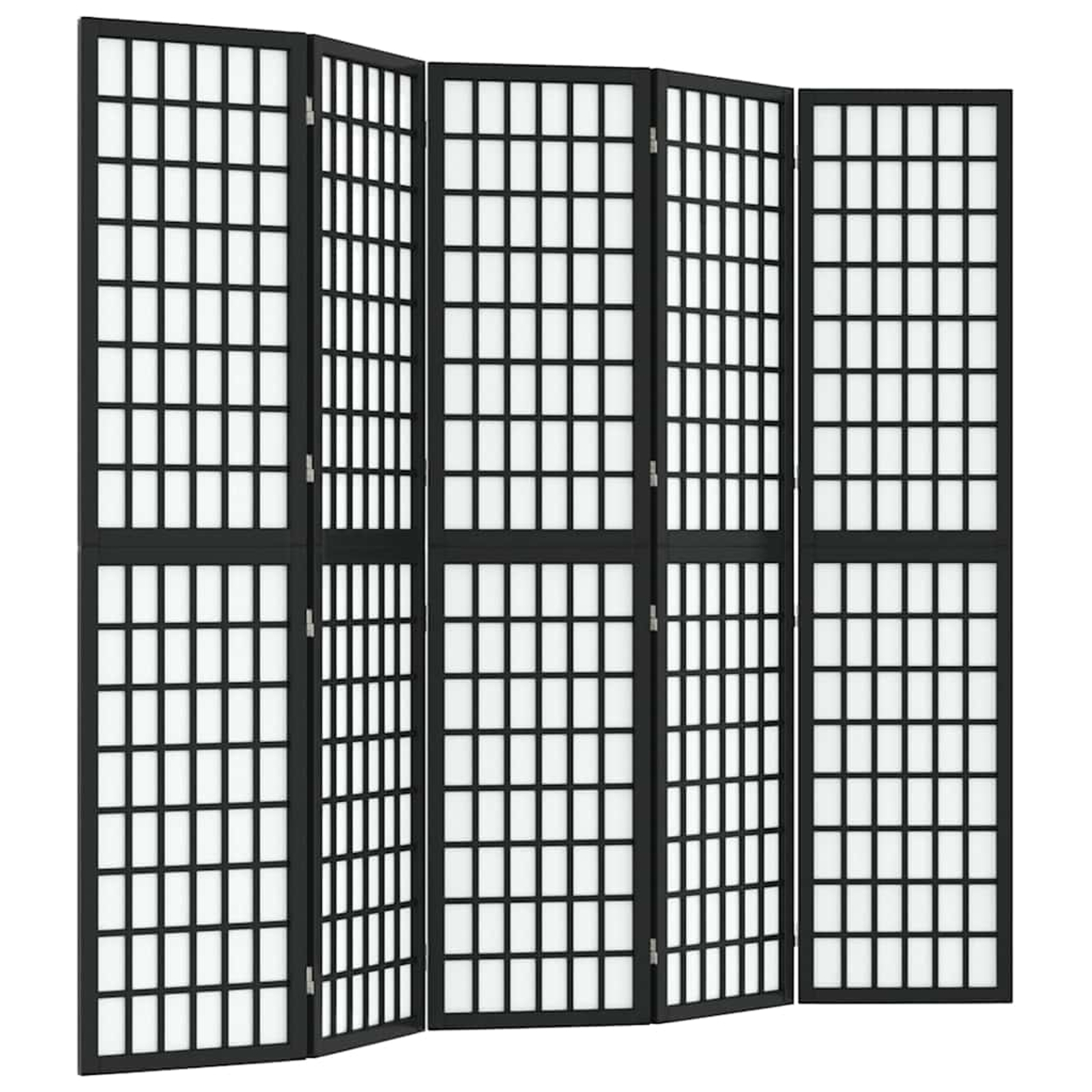 vidaXL Zložljiv 5-delni paravan japonski stil 200x170 cm črne barve