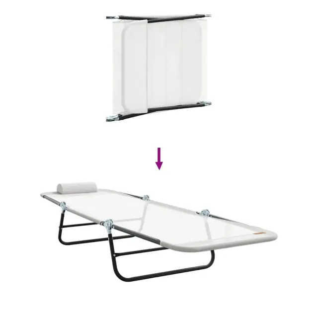 • Tekstilenska tkanina: Zložljiva ležalna postelja je narejena iz vrhunske tekstilene, ki je zračna, vremensko odporna in se hitro suši, kar je idealno za dolge dni na soncu.