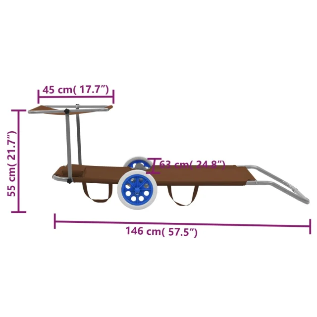 Zahvaljujoč zložljivemu dizajnu se lahko stol za na plažo preprosto shrani, ko ni v uporabi. Je tudi lahek in opremljen z 2 kolesoma za priročen transport.