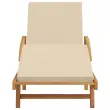 vidaXL Zložljiv ležalnik z kolesi in blazino bež trdnega akacijevega lesa