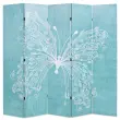 Paravan ima trden lesen okvir, oblečen pa je v trpežno platno. Na obeh straneh ima čudovit potisk metulja, zato bo v vašem prostoru ustvaril romantično vzdušje. Paravan se lahko preprosto zloži, kar bo prihranilo nekaj prostora, ko ne bo v uporabi.