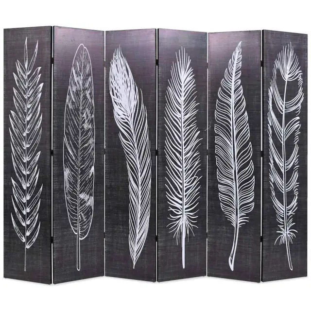 Paravan ima trden lesen okvir, prekrit pa je z robustnim platnom, ki ima na obeh straneh prefinjen potisk perja, zato bo vaši sobi dodal pridih stila. Za prihranek prostora se lahko razdelilnik sobe preprosto zloži, ko ni v uporabi.
