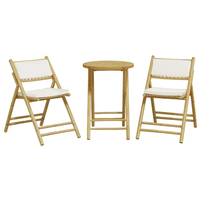 vidaXL Zložljiva bistro garnitura 3 kosi kremno bele blazine bambus