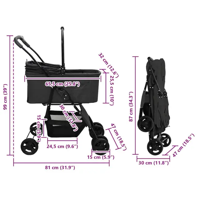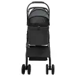 • Vključene komponente: Voziček za hišne ljubljenčke je nabit z uporabnimi funkcijami, vključno s stranskimi žepki za hiter dostop do potrebščin in spodnjim prostorom za shranjevanje. Ima tudi nogo-aktivirano zaklepanje ter vrtljiva prednja kolesa, ki omogočajo stabilno in varno vožnjo na različnih terenih.