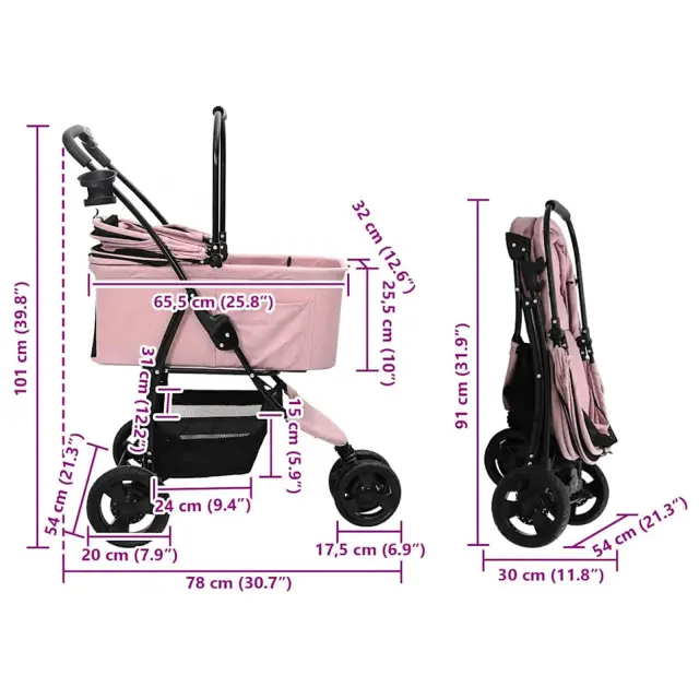 • 1 x voziček za hišne ljubljenčke: 78 x 54 x 101 cm