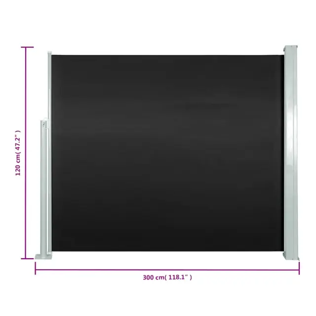 vidaXL Zložljiva stranska tenda 120 x 300 cm črna