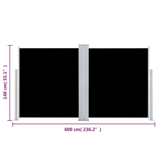 vidaXL Zložljiva stranska tenda črna 140x600 cm