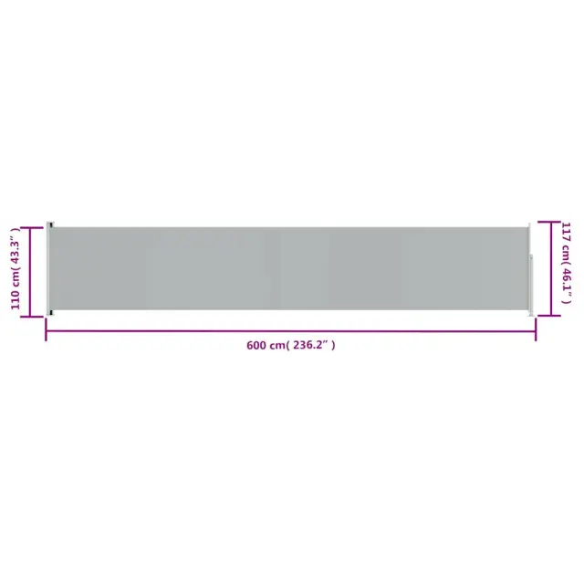 vidaXL Zložljiva stranska tenda za teraso 117x600 cm siva