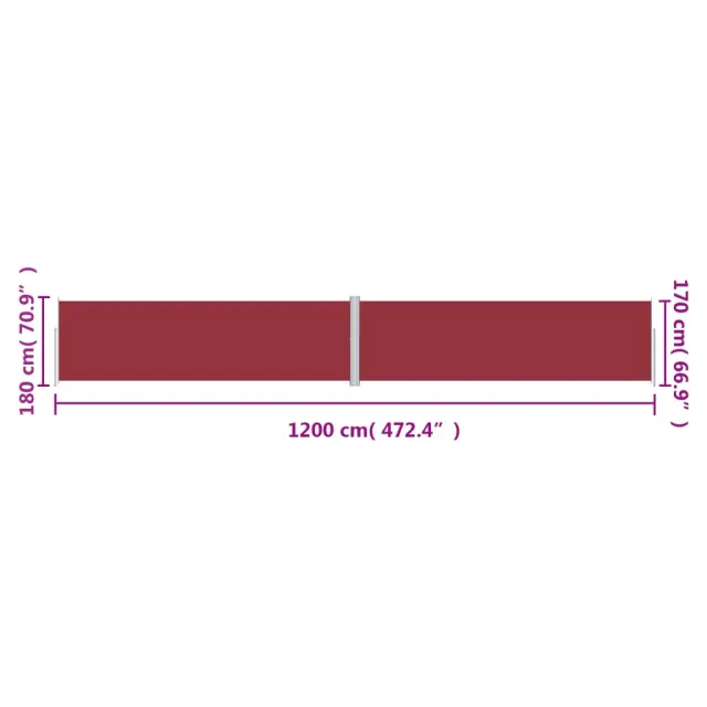vidaXL Zložljiva stranska tenda rdeča 180x1200 cm