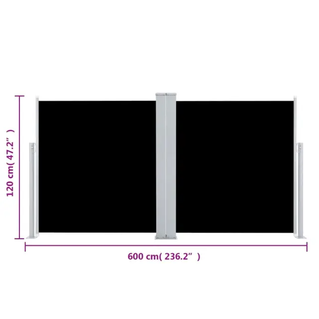 vidaXL Zložljiva stranska tenda črna 120x600 cm