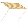 Ta zložljiva tenda bo zagotovo idealna za uporabo pred oknom, na terasi, balkonu ali na vašem vrtu. Na vodo, UV in vremenske vplive odporna tenda je izdelana iz kakovostnega blaga s PA oblogo. Močan jeklen okvir zagotavlja, da je tenda močna in trpežna. Streha iz poliestra je preprosta za čiščenje, saj jo lahko snamete in operete. Poleg tega se izdelek lahko uporablja kot običajno senčilo ali pa za popolno pokritje okna. Zahvaljujoč podporni ročici in verigi je ta tenda zložljiva. Višina in kot tende sta prilagodljiva. Izdelek je preprost za montažo.Barva: Rumena in belaMaterial: Jeklo, 100 % poliester s PA oblogoVelikost: 100 x 150 cm (Š x V)Dolžina: 0 - 150 cmRočno upravljanjeOdporno na UV žarke in vodoPotrebno sestavljanje: Da 145890