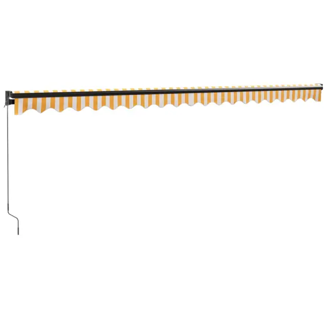 Pod to neverjetno zložljivo tendo lahko v terasi uživate v hladni pijači, okusni poslastici ali dobrem pogovoru s prijatelji! Trpežen material: Okvir tende je izdelan iz prašno barvanega aluminija, ki je trpežen in vzdržljiv. Tkanina s površinsko obdelavo iz PU je odporna na UV-žarke. Vašo družino ali goste bo zaščitila pred UV žarki in bleščečo sončno svetlobo.Izvlečna tenda: Za izpolnjevanje različnih zahtev je nadstrešek za vrata zložljiv. Zagotavlja hladno senco, ko je odprta in ne ovira pogleda, ko je zložena.Stenska zasnova: Tenda za teraso se s priloženimi stenskimi nosilci zlahka pritrdi na steno in ne zavzema prostora na tleh.Široka uporaba: Izvlečni nadstrešek ima preprosto in elegantno obliko, ki se bo dobro ujemala z vašim domom ali poslovnim okoljem. Primeren je za različne prostore, kot so balkoni, terase, dvorišča, restavracije, kavarne, trgovine in drugo.Barva: Rumena in belaMaterial okvirja: Aluminij s prašnim premazomMaterial tende: Tkanina (100 % poliester) s PU prevlekoVelikost: 5 x 3 m (D x Š)Potrebno sestavljanje: DaPaket vsebuje:1 x Senčilo1 x Okvir 3154460
