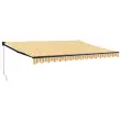 Pod to neverjetno zložljivo tendo lahko v terasi uživate v hladni pijači, okusni poslastici ali dobrem pogovoru s prijatelji! Trpežen material: Okvir tende je izdelan iz prašno barvanega aluminija, ki je trpežen in vzdržljiv. Tkanina s površinsko obdelavo iz PU je odporna na UV-žarke. Vašo družino ali goste bo zaščitila pred UV žarki in bleščečo sončno svetlobo.Izvlečna tenda: Za izpolnjevanje različnih zahtev je nadstrešek za vrata zložljiv. Zagotavlja hladno senco, ko je odprta in ne ovira pogleda, ko je zložena.Stenska zasnova: Tenda za teraso se s priloženimi stenskimi nosilci zlahka pritrdi na steno in ne zavzema prostora na tleh.Široka uporaba: Izvlečni nadstrešek ima preprosto in elegantno obliko, ki se bo dobro ujemala z vašim domom ali poslovnim okoljem. Primeren je za različne prostore, kot so balkoni, terase, dvorišča, restavracije, kavarne, trgovine in drugo.Barva: Rumena in belaMaterial okvirja: Aluminij s prašnim premazomMaterial tende: Tkanina (100 % poliester) s PU prevlekoVelikost: 4,5 x 3 m (D x Š)Potrebno sestavljanje: DaPaket vsebuje:1 x Senčilo1 x Okvir 3154459