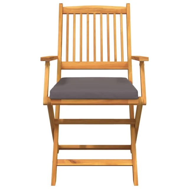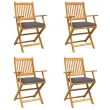 vidaXL Zložljive vrtnarske stole s sivimi blazinami 4 kosa iz trdnega akacijevega lesa