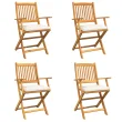 vidaXL Zložljive vrtne stole s belimi blazinami 4 kosa iz solidnega akacijevega lesa