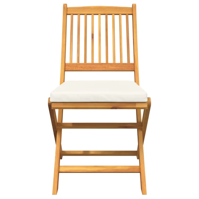 vidaXL Zložljive vrtne stole s belimi blazinami 6 kosov iz trdnega akacijevega lesa