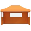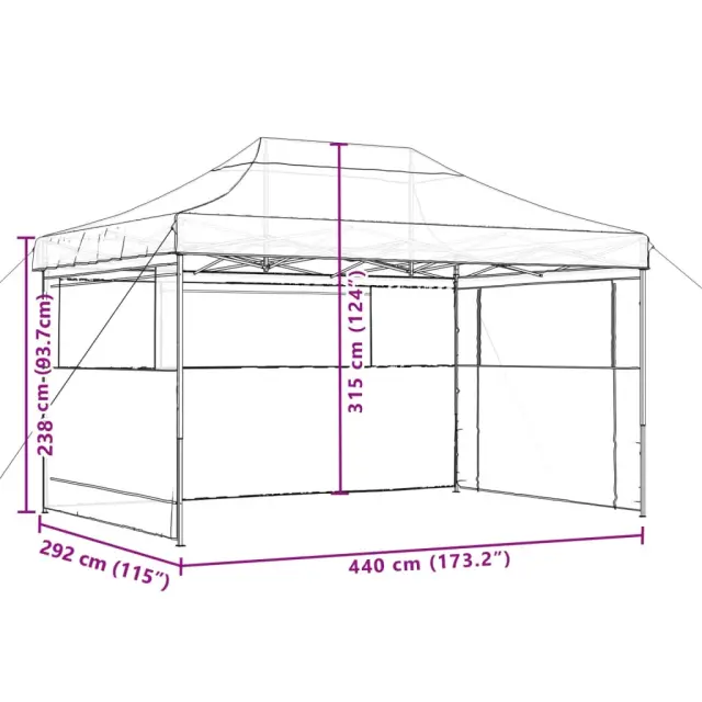 Ta zložljivi pop-up šotor za zabavo s stranskimi stenami je idealen za številne dogodke na prostem, kot so predstave, poroke, zabave, žari, festivali itd. Material z dolgo življenjsko dobo: Prevleka je izdelana iz tkanine oxford s prevleko iz PVC, zato je odlična izbira za vlažne ali deževne razmere, poleg tega pa jo je enostavno čistiti.Pop-up in zložljiva zasnova: Šotor lahko enostavno postavite in zložite v nekaj sekundah. Paviljon je zložljiv za enostavno shranjevanje in prevoz.Praktična oblika: Šotor ima 3 stranske stene s prozornimi okni in ponuja kombinacijo odprte in zaprte oblike, da se vanj lahko prilega množica gostov, ne da bi se počutili utesnjene.Stabilen okvir: Prašno premazan jeklen okvir vrtnega šotora zagotavlja trdnost in stabilnost. Dobro je vedeti:Ta izdelek ni primeren za uporabo v slabih vremenskih razmerah, kot so močan veter, močan dež, sneg, nevihte ipd.Barva tkanine: OranžnaBarva okvirja: ModraMaterial okvirja: Jeklo s prašnim premazomMaterial strehe: Oxford tkanina (100 % poliester) s PVC premazomMaterial stranic: Oxford tkanina (100 % poliester), PE (polietilen)Dimenzije: 440 x 292 x 315 cm (D x Š x V)Višina nadstreška od tal: 238 cm3 stranice s prozornimi okniPriloženih 8 talnih količkov in 4 vrviPotrebno sestavljanje: Da 4004969