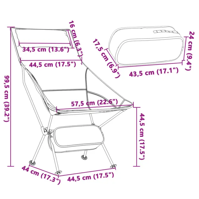 vidaXL Zložljivi stoli za kampiranje 2 kosa črna tkanina in aluminij