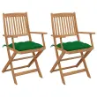 vidaXL Zložljivi vrtni stoli 2 kosa z blazinami trden akacijev les
