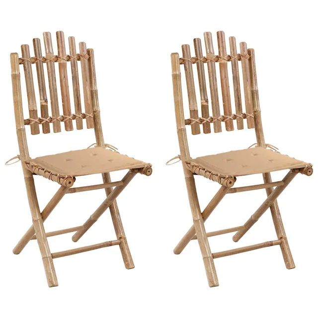 Vrtni stol iz trdnega bambusa je močan in vzdržljiv. Je tudi vremensko odpren in vodoodporen, zato je preprost za čiščenje z vlažno krpo. Jedilni stol je zložljiv za prihranek prostora, ko ni v uporabi. Priložene blazine zagotavljajo dodatno udobje med počivanjem. Izdelane so iz 100 % poliestra, ki zagotavlja moč in vzdržljivost za uporabo na prostem. Vsaka blazina ima dva kompleta vrvic za dobro pritrditev na stol.