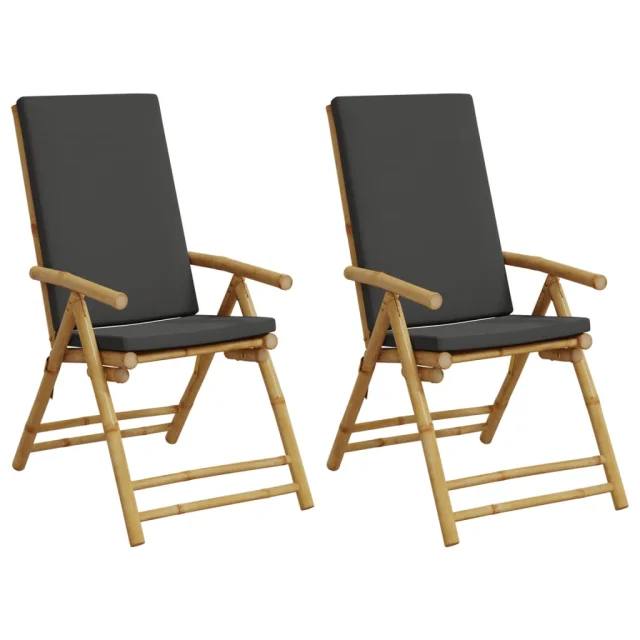 vidaXL Zložljivi vrtni stoli 2 kosa z blazinami bambus