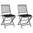 vidaXL Zložljivi vrtni stoli 2 kosa z blazinami trden akacijev les