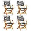 vidaXL Zložljivi vrtni stoli 4 kosi črni poli ratan in trden les