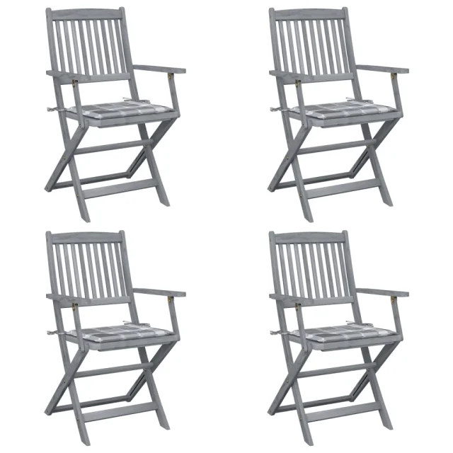 vidaXL Zložljivi vrtni stoli 4 kosi z blazinami trden akacijev les