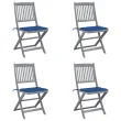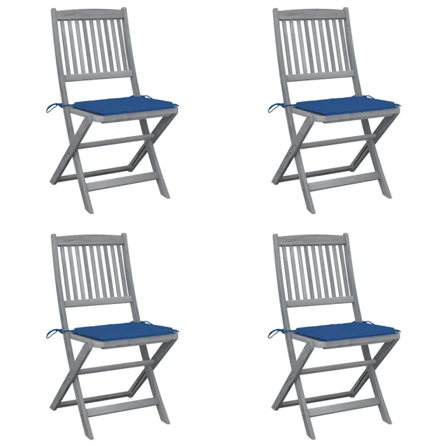 vidaXL Zložljivi vrtni stoli 4 kosi z blazinami trden akacijev les