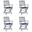 vidaXL Zložljivi vrtni stoli 4 kosi z blazinami trden akacijev les