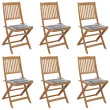 vidaXL Zložljivi vrtni stoli 6 kosov z blazinami trden akacijev les