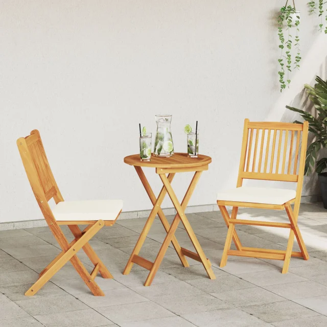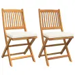 vidaXL Zložljivi vrtni stoli z belim blazino 2 kosa iz masivnega akacijevega lesa