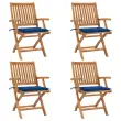vidaXL Zložljivi vrtni stoli z blazinami 4 kosi trdna tikovina