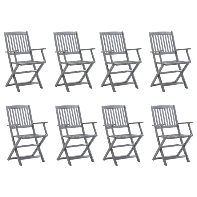 vidaXL Zložljivi zunanji stoli 8 kosov z blazinami trden akacijev les