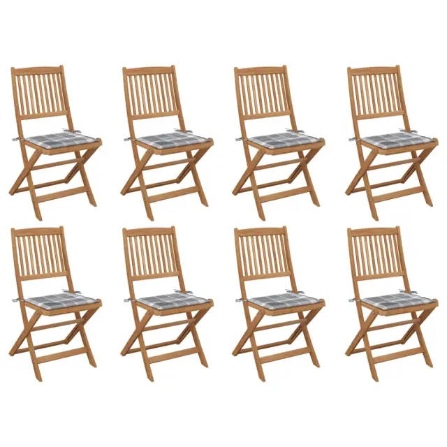 vidaXL Zložljivi zunanji stoli z blazinami 8 kosov trden akacijev les