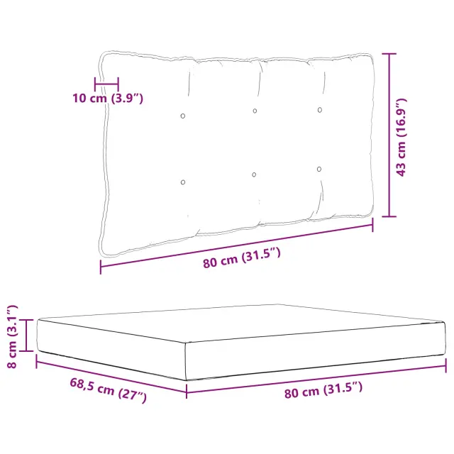 • 1 x sedežna blazina: 80 x 68,5 x 8 cm (D x Š x V)