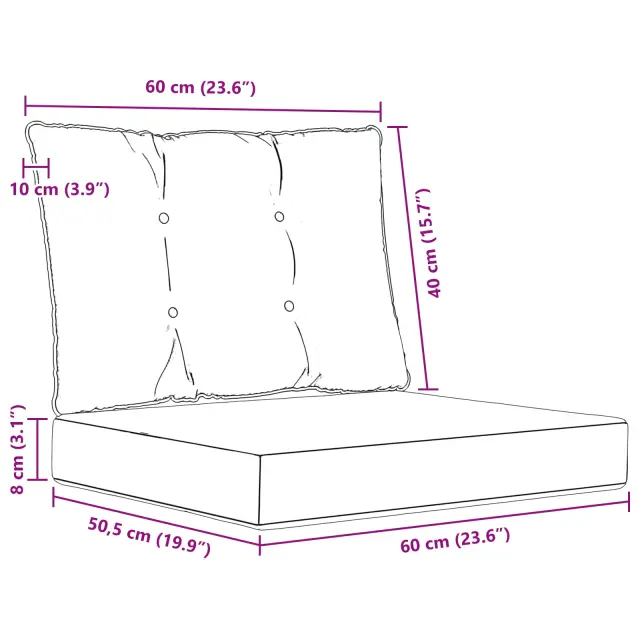 • 1 x sedežna blazina: 60 x 50,5 x 8 cm (D x Š x V)