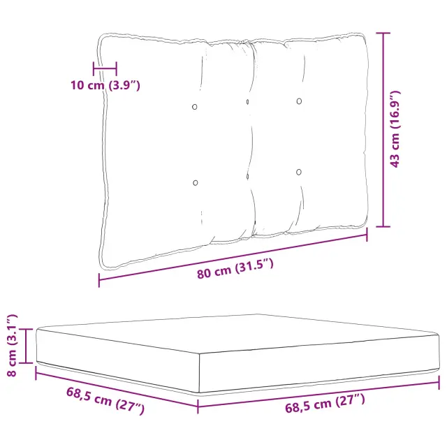 • 1 x Sedežna blazina: 68,5 x 68,5 x 8 cm (DxŠxV)