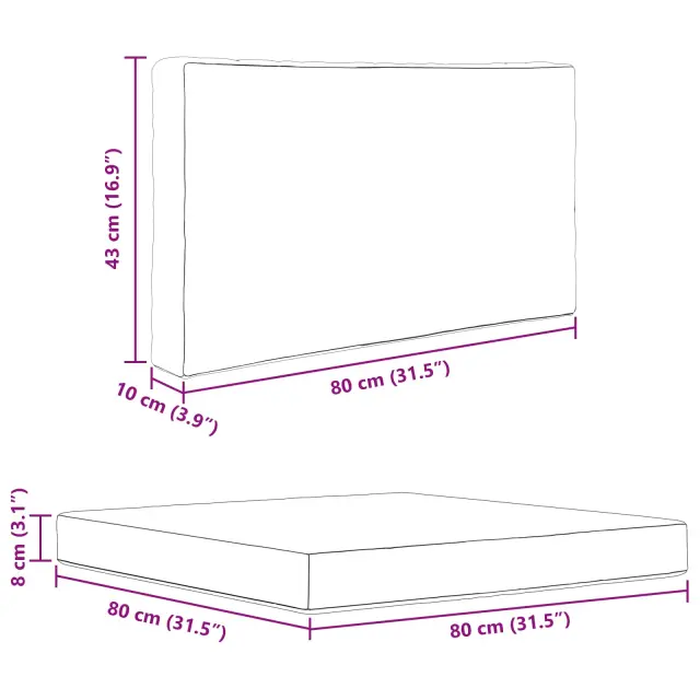 • 1 x sedežna blazina: 80 x 80 x 8 cm (D x Š x V)